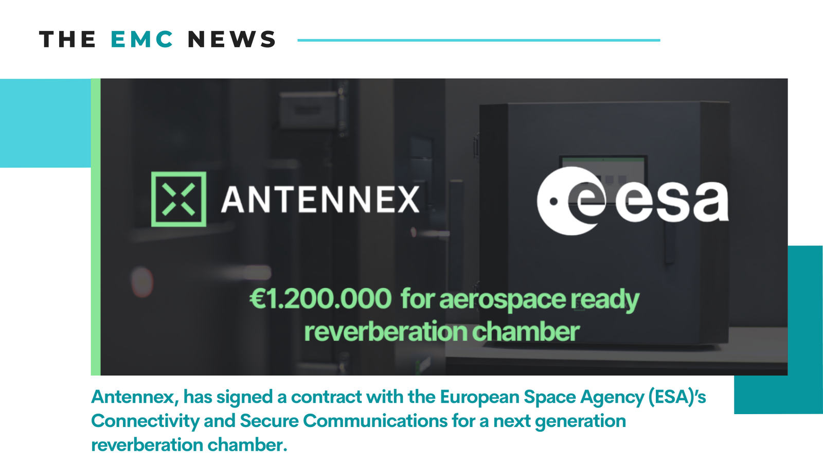 Antennex, has signed a contract with the European Space Agency (ESA)’s Connectivity and Secure Communications for a next generation reverberation chamber.