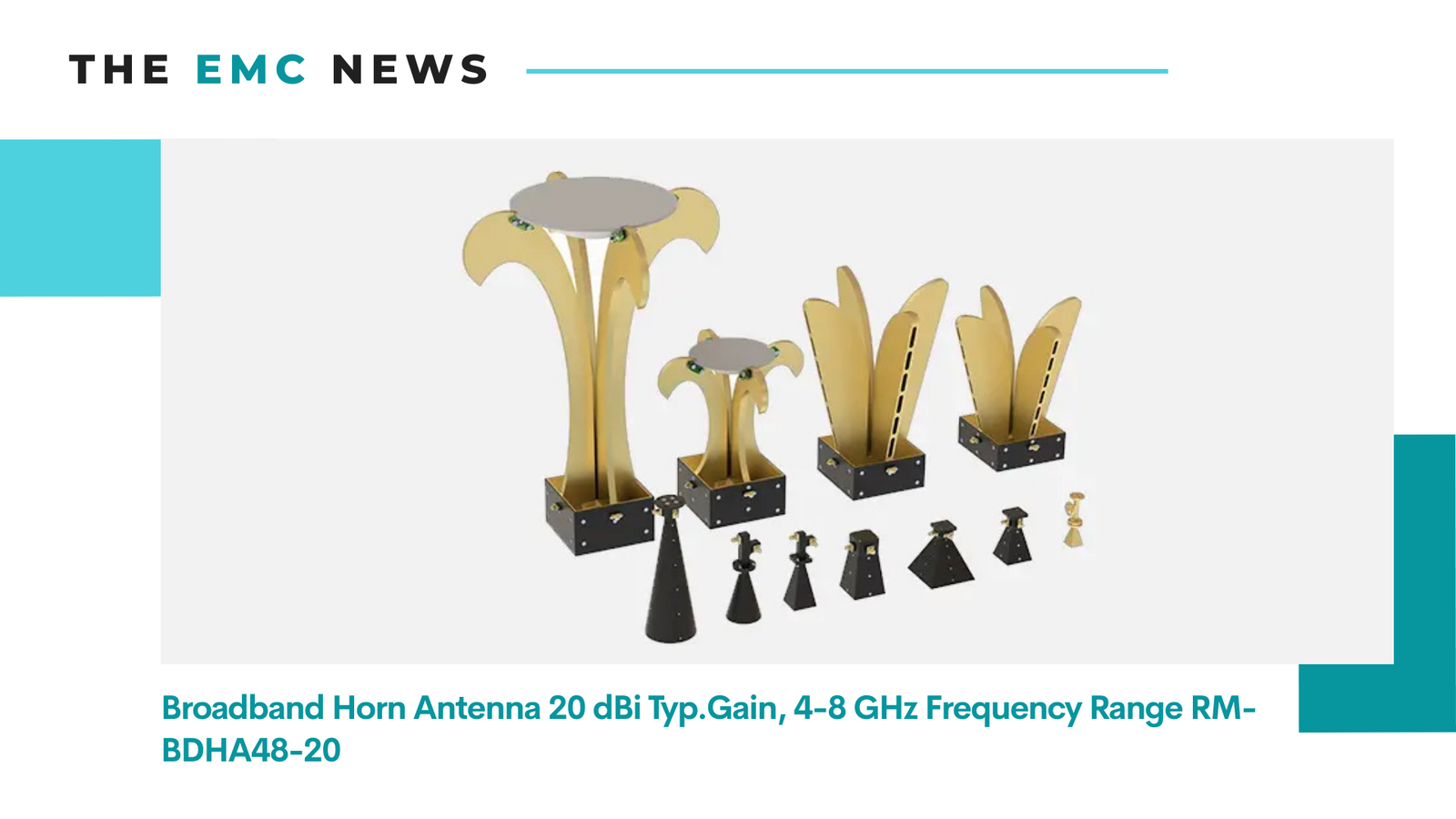 Broadband Horn Antenna 20 dBi Typ.Gain, 4-8 GHz Frequency Range RM-BDHA48-20