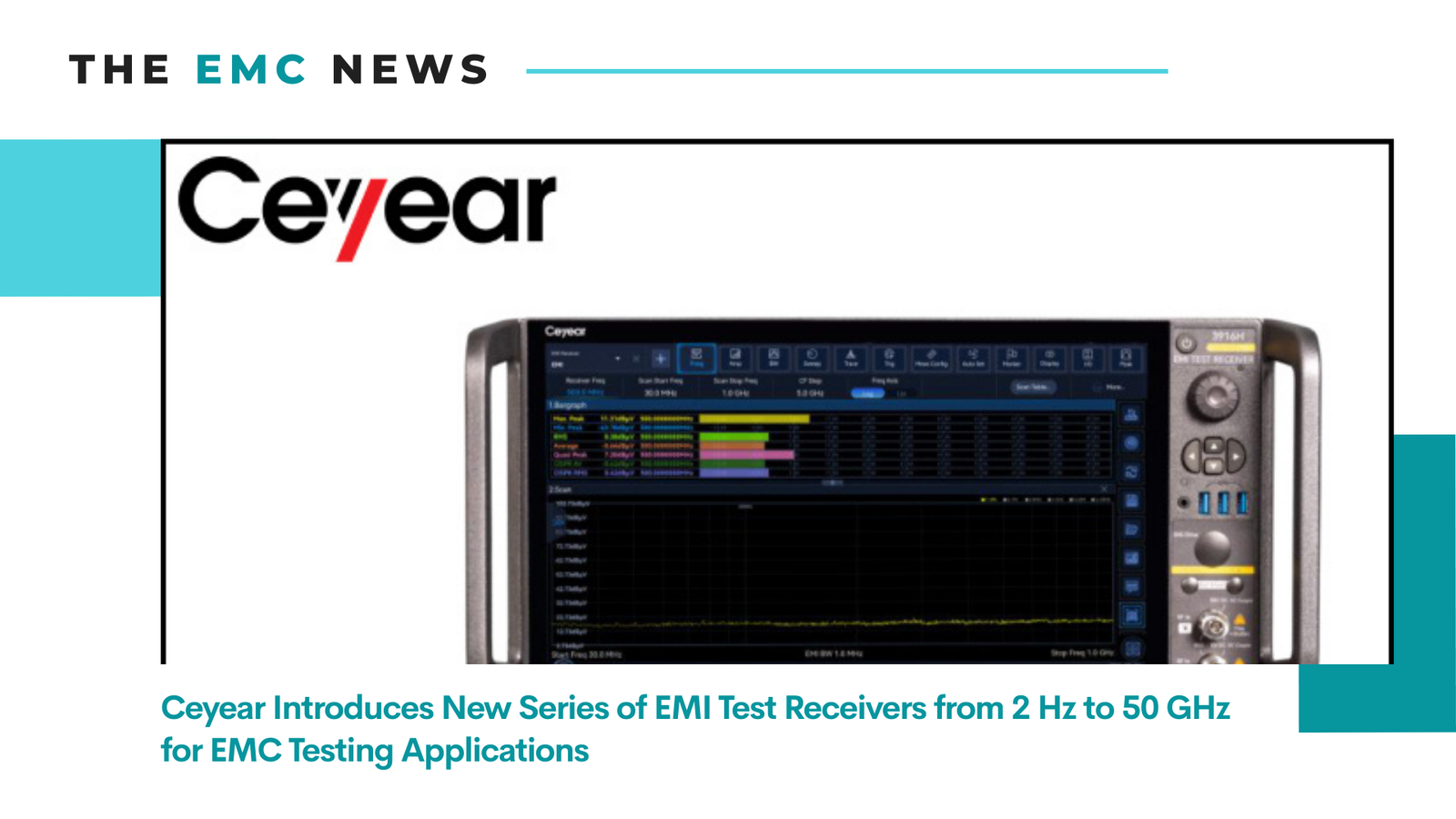 Ceyear has introduced the 3916 Series EMI Test Receivers certified to meet numerous domestic and international EMC standards. This high-performance instrument covers a frequency range from 2 Hz to 50 GHz and can be used for various applications, including EMC pre-compliance testing, compliance testing, and microwave/millimeter-wave signal analysis.
