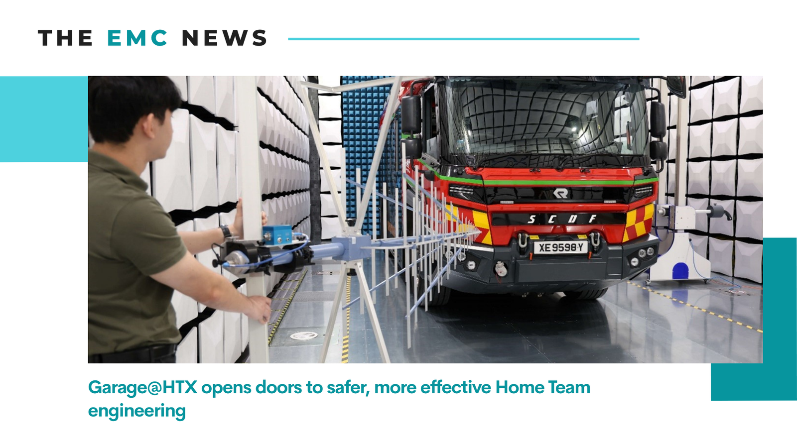 Standing at 16.5m deep, 6.5m wide and 5.5m tall, the chamber was designed to fit some of the largest of Home Team vehicles, such as the Electric Pump Ladder. (Photo: HTX/Nicole Lim)The Home Team deploys a wide range of vehicles in its operations, from ambulances to fire engines and electric vehicles (EVs). These often contain a variety of hardware that emits electromagnetic signatures, which may interfere with sensitive electronics on board, such as life-saving equipment.